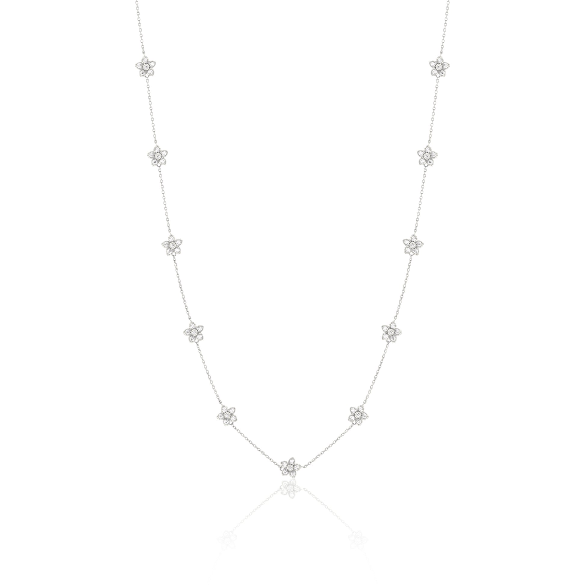 Our Arcobaleno Purezza Necklace is a timeless centerpiece of the Arcobaleno Bianco Collection. Designed in 925 sterling silver and adorned with luminous white zirconia flowers, it embodies elegance and purity in every detail. A refined creation that radiates sophistication, it’s the perfect necklace to bring a touch of brilliance to any occasion.